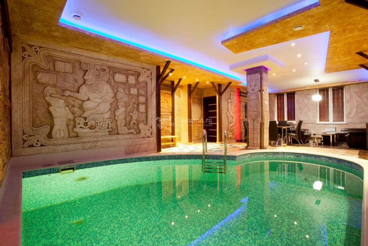 - «Голубая Лагуна». Этот гостевой номер способен комфортно разместить компанию из шести человек, предоставив возможность отлично пропарить тело и дух в финской сауне, которая также может работать в режиме русской бани для парения под веник. Свыше 6-ти человек доплата 300 руб./час с человека.